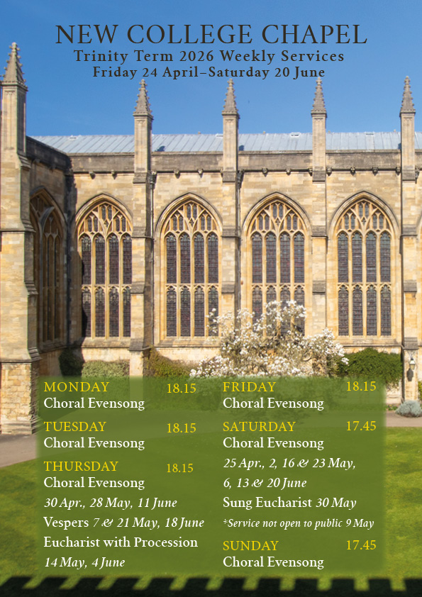 Sunday evensong and special services will also be livestreamed on the New College Choir YouTube channel.